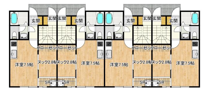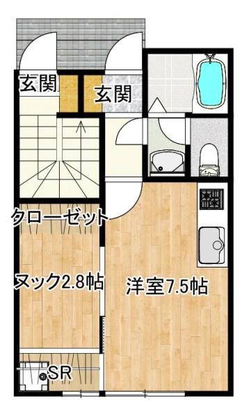 間取り:1KS(洋室7.5畳・ヌック2.8畳)※2Fは1畳の物入スペース有