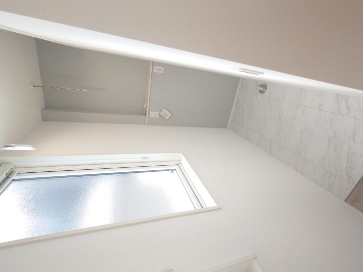南側の採光と換気の出来るスペースに洗濯機置き場と物干しスペースを設けました。